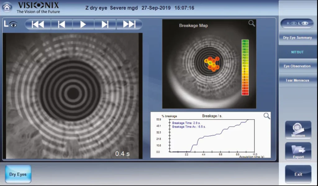 Il Visionix 120+ Dry Eye rappresenta un’eccellenza nella diagnostica non invasiva del film lacrimale. Questo sistema avanzato consente di: