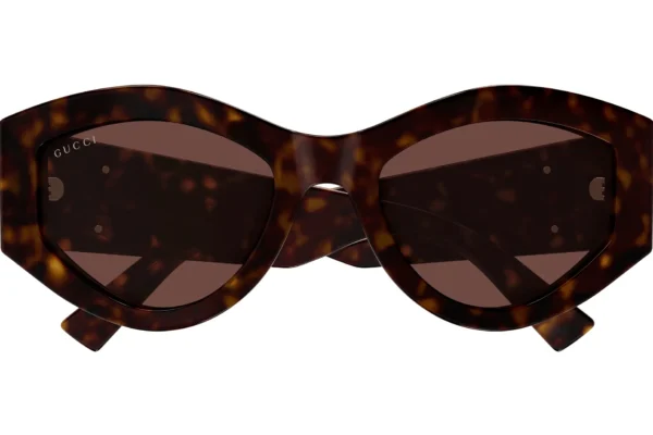 Occhiali prodotti in Italia, con materiali esclusivi come acetato, metallo dorato e lenti premium. Le montature presentano dettagli iconici come il logo GG, simbolo di lusso e riconoscibilità globale.