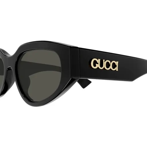 Occhiali prodotti in Italia, con materiali esclusivi come acetato, metallo dorato e lenti premium. Le montature presentano dettagli iconici come il logo GG, simbolo di lusso e riconoscibilitร globale.