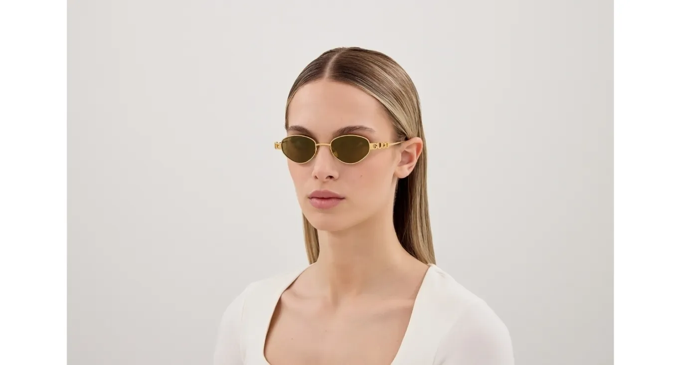 Occhiali prodotti in Italia, con materiali esclusivi come acetato, metallo dorato e lenti premium. Le montature presentano dettagli iconici come il logo GG, simbolo di lusso e riconoscibilitร globale.